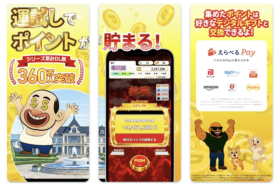 愛嬌のあるおじさんを育てて、金のチケットを集めてPayPayやAmazonギフト券に換える、放置寄りのポイ活アプリなの。